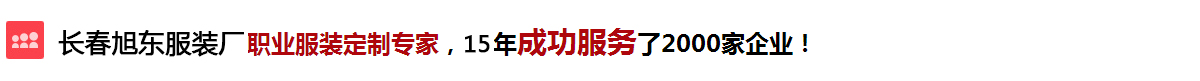 吉林省長春市旭東服裝廠,電話:13578777918,提供工作服,工裝定制,勞保服,保安服,職業裝定制,本公司是一家集生產,設計,制作,銷售為一體的多元化公司。長春市旭東服裝制造有限公司成立于2003...[查看更多]